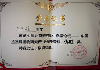 王玉珏获奖证书