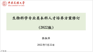 周宜君院长首先对学校2022版培养方案修订的指导思想、基本原则及修订思路和重点进行了解读。生物系主任张淑萍教授详细介绍了《2022版生物科学类本科培养方案》制定的原则、依据及课程设置。随后,于静娟教授和徐基良教授分别从生物科学专业和生态学专业人才培养角度对培养方案给出了中肯的意见,两位专家认为本次培养方案的课程设置体现了“厚基础、宽口径、强交叉、重贯通”的总体指导思想,可在此基础上进一步提高学生的选课自由度,体现科教和产教融合,将新技术的应用引入课堂,并通过国家精品在线课程及校际互选课程为学生提供多元选课途径。学院教师与两位专家还就理科基础课程设置、实习实践课程及国际化培养途径进行了热烈讨论。在专家充分论证的基础上,教务处处长冯金潮教授对贯通培养的含义和一流专业定位提升给出了指导意见,建议将服务国家战略与人才培养层次的定位紧密结合,设置满足国家战略需求的培养方案,从而提升人才培养质量。